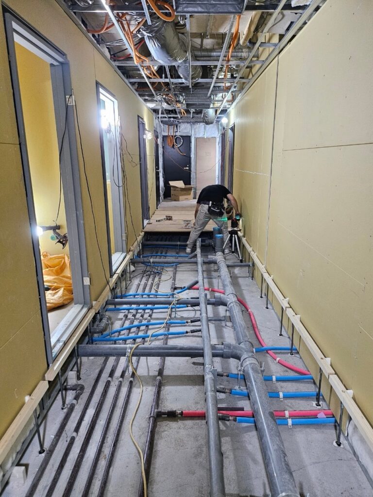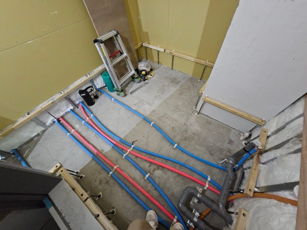 さすがサウナ店舗。床下は配管だらけです。